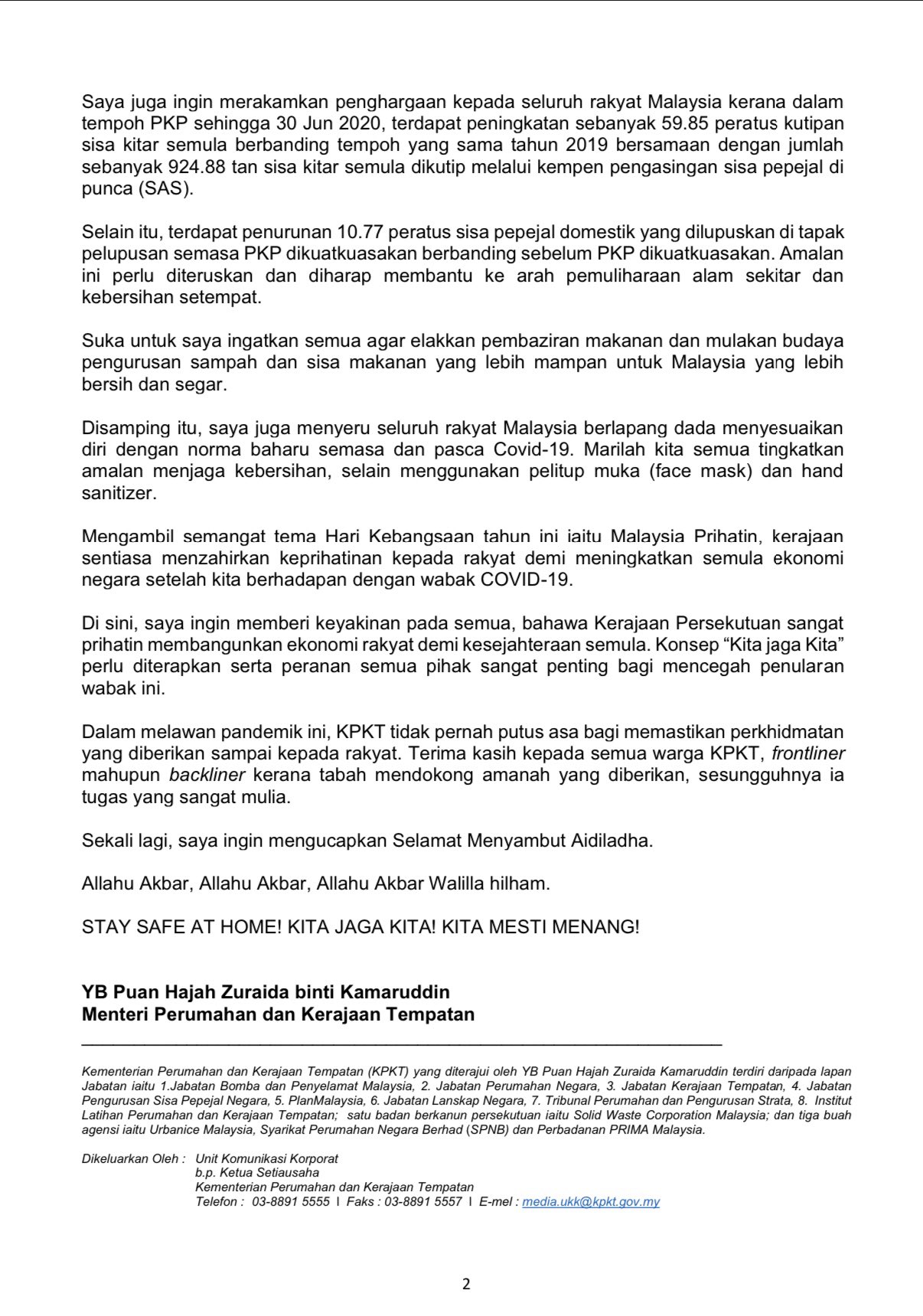 Kementerian perumahan dan kerajaan tempatan (kpkt).