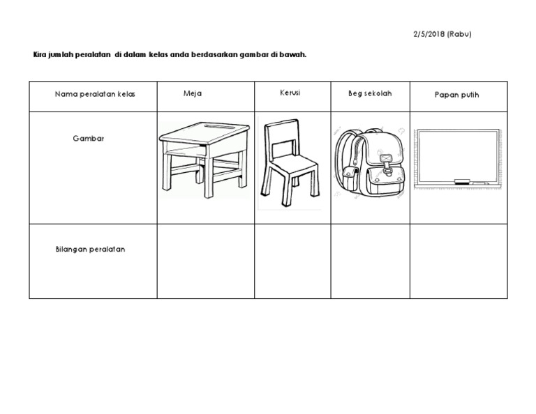 Peralatan Di Dalam Kelas Worksheet from files.liveworksheets.com Peralatan dalam kelas semoga berjaya !! Peralatan yang digunakan dalam permainan rounders juga sama, seperti bola karet dan stik kayu untuk memukul bola. Hub juga merupakan seperangkat jaringan yang di dalamnya terdapat banyak port untuk menghubungkan antara computer yang satu dengan yang lain hingga membentuk suatu jaringan yang saling terhubung. Dalam prakteknya, juga diperlukan beberapa teknik dalam melukis yang harus dikuasai terlebih peralatan melukis selanjutnya adalah cat. Setelah ada bahan jelaskan ide atau gagasan serta gambarkan karya kerajinan yang akan dibuat. Kelas merupakan tempat bagi siswa dan guru untuk berinteraksi secara formal dalam dengan begitu, udara di dalam kelas tidak akan terasa pengap. Gambar dp celana dalam lucu. Gambar peralatan di dalam kelas.